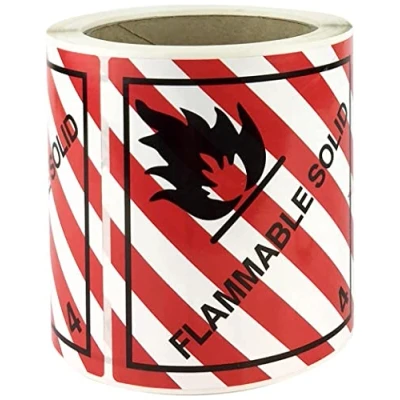 Flammable Solid Labels Stickers, Class 4.1 100mm Hazard Warning Diamonds Rolls of 250 self Adhesive