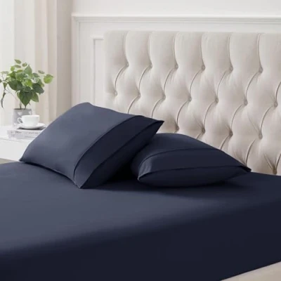 Flannel Pillowcases Standard Set of 2 Ultra Soft Cozy & Breathable Pillow Cases Queen Size Heavyweight Durable, Standard/Queen, Navy Blue