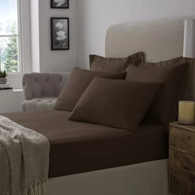Flannelette 100% Brushed Cotton Soft 16"/40CM Extra Deep Fitted Sheets (Super King, Brown)