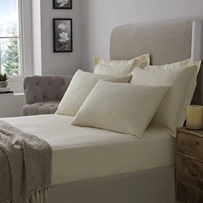 Flannelette 100% Brushed Cotton Soft 16"/40CM Extra Deep Fitted Sheets (Super King, Cream)