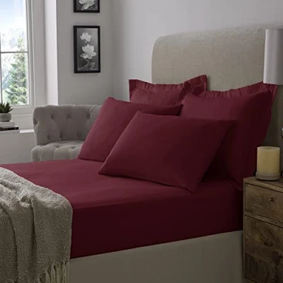 Flannelette 100% Brushed Cotton Soft 16"/40CM Extra Deep Fitted Sheets (Super King, Wine)