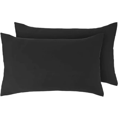 Flannelette Fitted Sheet 100% Brushed Cotton Plain Colour Bedsheets Extra Deep 32CM/13Inch Skirt Box Easy Care Bedding Super Soft 160 GSM Luxury Quality (Black, Pair Of PillowCase)