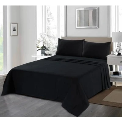 flannelette Fitted Sheet & Flat Sheet, 100% Brushed Cotton, 160 GSM Luxury Quality, 32CM/13" Plain Colour, Easy Care Bedding, Super Soft (Black, Single Sheet)