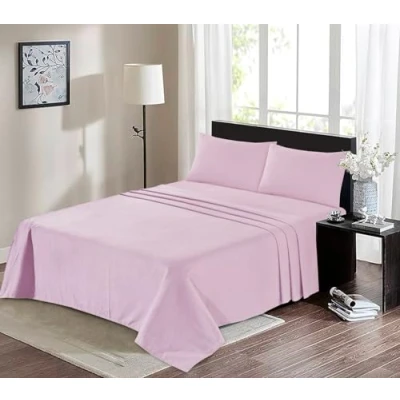 flannelette Fitted Sheet & Flat Sheet, 100% Brushed Cotton, 160 GSM Luxury Quality, 32CM/13" Plain Colour, Easy Care Bedding, Super Soft (Pink, Single Sheet)