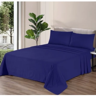 flannelette Fitted Sheet & Flat Sheet, 100% Brushed Cotton, 160 GSM Luxury Quality, 32CM/13" Plain Colour, Easy Care Bedding, Super Soft (Royal Blue, Single Sheet)