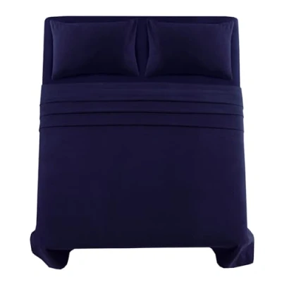 Flannelette Flat Sheet 100% Brushed Cotton Plain Colour Bedsheets Extra Deep 32CM/13Inch Skirt Box Easy Care Bedding Super Soft 160 GSM Luxury Quality (Navy Blue, King Sheet)