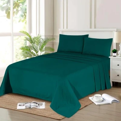 Flannelette Flat Sheet 100% Brushed Cotton Plain Colour Bedsheets Extra Deep 32CM/13Inch Skirt Box Easycare Bedding 160 GSM Luxury Quality (Emerald Green, Double Sheet)