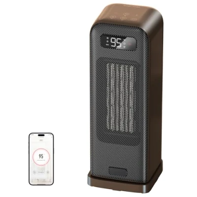 FLANUR Space Heaters for Indoor Use, Smart Portable Electric Heater with Thermostat, WiFi and Voice Control, 12H Timer, 4 Modes, 36dB 1500W PTC Ceramic Safety Heat Office Bedroom Home 1Pack Brown