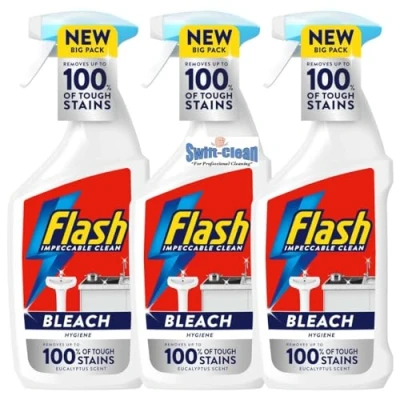 Flash Multi Purpose Bleach Cleaning Spray Remove Upto 100% of Tough Stains Eucalyptus Scent 800ML x 3 Sold by Slamtech