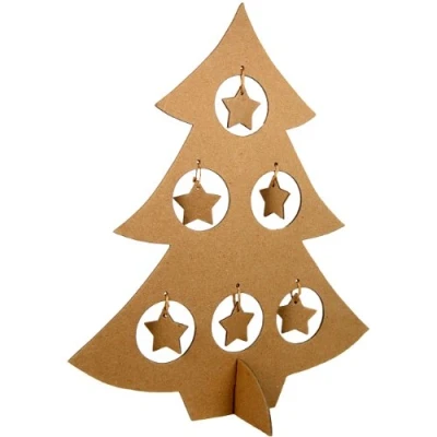Flat Papier Mache Collapsable Christmas Tree Pack complete with 6 x hanging stars tied with string and a base. Pefect for Christmas decorating projects. Our own-brand range of biodegradable low-cost papier mache shapes (made from recycled waste products e.g. old newspapers cardboard etc) have been hand-made using 100% recycled materials and organic glue. The designs are supplied in a buff or manila colour ready to paint or decorate with acrylics inks poster paints stamps polymer clay foam clay decoupage (or Decopatch) papers napkins glitters embelishments beads and much more. Dimensions: Outer = 46cm H x 38cm Wide - Circle = 7cm - Star = 5cm Sold in boxes of 6 CLP1079 MPN XM2210