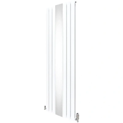 ManoManoGeneral description Infuse warmth into your home with our cutting-edge flat panel vertical radiator in white, featuring a sleek central mirror and thermostatic chrome valve set. Crafted from premium 1.5mm carbon steel, this radiator is built to last while offering a striking focal point that enhances the ambiance of any room. Standing tall at 1800mm and spanning 565mm in width, it fits seamlessly into various spaces. Engineered for optimal performance, it boasts double columns with robust 60mm steel tubes, delivering superior heat output to keep your space cosy and comfortable. Technical specifications Colour: White Weight: 48.4kg Material: 1.5mm Carbon Steel Finish: Triple Layered Powder Coating Height: 1800mm / 180cm / 70.9” Width: 565mm / 56.5cm / 22.2” Radiator Depth: 58mm / 5.8cm / 2.3” Depth With Bracket: 93mm / 9.3cm / 3.7” Gap Between Tubes: 10mm / 1cm / 0.4” Individual Tube Size: 60mm / 6cm / 2.4” Number Of Columns: 6 BTU Rating @ 50: 6372 BTU Rating @ 60: 8092 Mirror