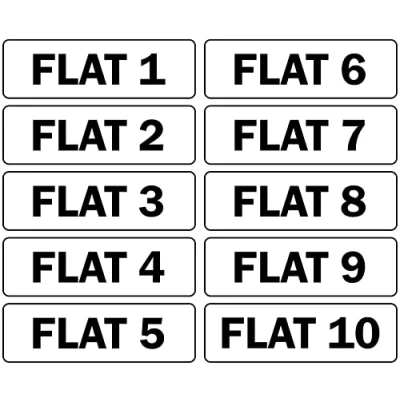 Flat Numbers signs numbered 1 10 Self adhesive stickers 300mm x 100mm (Flat 6)