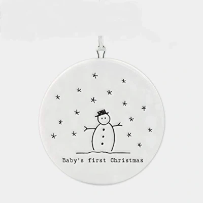 Flat Porcelain Bauble Baby's First Christmas Hanging Ornament