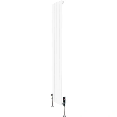 Infuse warmth into your home with our cutting-edge flat single column radiators in white and thermostatic chrome valve set - a perfect blend of timeless elegance and modern efficiency. Crafted with precision from premium 1.5mm carbon steel, these radiators are not only built to last but also designed to impress. Standing tall at 1600mm and spanning 280mm in width, they offer versatility in placement, fitting seamlessly into various spaces with ease. Boasting a sleek white finish, these radiators serve as a striking focal point, enhancing the ambiance of any room with their bold presence. Their appeal goes beyond aesthetics as they are meticulously engineered for optimal performance. Featuring a single column with robust steel tubes measuring 60mm x 15mm, they deliver superior heat output, ensuring your space remains cosy and comfortable. The triple layered powder coating not only enhances durability but also provides resistance against wear, preserving the radiator's pristine