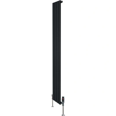 Infuse warmth into your home with our cutting-edge flat single column radiators in black and thermostatic chrome valve set - a perfect blend of timeless elegance and modern efficiency. Crafted with precision from premium 1.5mm carbon steel, these radiators are not only built to last but also designed to impress. Standing tall at 1800mm and spanning 280mm in width, they offer versatility in placement, fitting seamlessly into various spaces with ease. Boasting a sleek black finish, these radiators serve as a striking focal point, enhancing the ambiance of any room with their bold presence. Their appeal goes beyond aesthetics as they are meticulously engineered for optimal performance. Featuring a single column with robust steel tubes measuring 60mm x 15mm, they deliver superior heat output, ensuring your space remains cosy and comfortable. The triple layered powder coating not only enhances durability but also provides resistance against wear, preserving the radiator's pristine