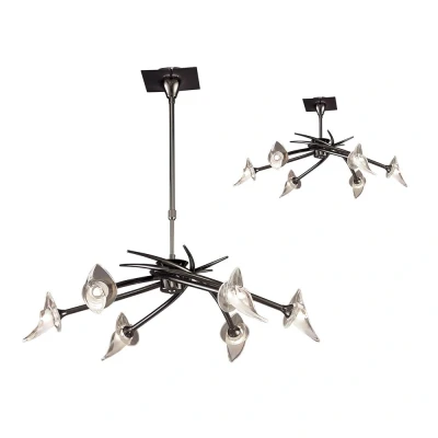 This is a design concept with elegant and sensuous curves in its elements and forms. A fantastic family of sweeping arms and mesmerizing glass shades make these light fittings simply stunning. The two tier ceiling fittings are simply tremendous as are the complimenting wall, table and floor lamps. The glass shades are finished with a handcrafted glaze. Many of the fixtures are available in up to three different colour finishes, offering a personal favourite for everyone.
