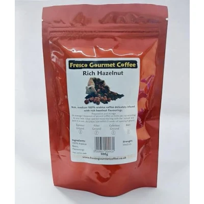 Made from 100% Arabica Coffee, medium roast All our flavours are nature identical and are sugar, fat, alcohol and calorie free which are then blended to our own recipes. At Fresco, we have created our own coffee blend for flavouring, in order to perfectly balance the coffee taste and the flavours. Sold in reseable bags with a 'Ziplock' for maximum freshness Available in whole beans or ground for cafetieres, filter and espresso coffee machines.