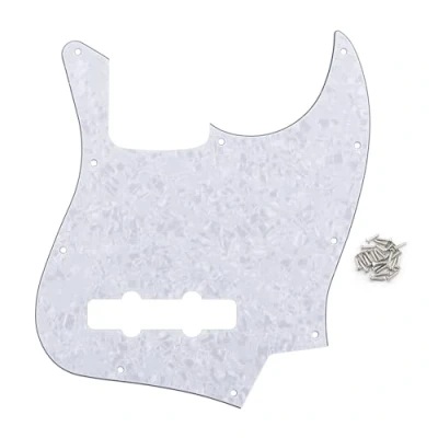 Pickguard for Most USA /Mexico Standard 10 Hole FD JB Bass ,not fit SQ JB Basses or any other JB Basses. Attention ! ! ! Please check the size picture to confirm it whether fit your guitar before you place an order, as with any pickguard, some modification may be necessary for exact hole alignment, as there are many different hole patterns. thank you. 10 screw mounting holes in the side of pickguard without truss rod notch, No holes for thumb rest. Kindly check the dimension size before purchasing. Smooth finished edge, 3ply PVC + 1ply Celluloid material plate, approx. 0.09-0.11inch thickness. Color: White Pearl. Double layers protective films on the surface to anti-scratch, kindly split it off after replacing. Package List: 1 x Jazz Bass Pickguard, 25 x mounting screws.