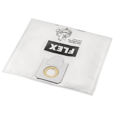 High-quality fleece filter bag of dust class M for optimal filtration of fine dust. Improved filling and more efficient volume use compared to paper filter bags. Particularly durable and tear-resistant thanks to robust non-woven material. Moisture-resistant and therefore ideal for slightly damp dusts. Dual component dust cap ensures 100% sealing and consistently high suction power., Manufacturer: Flex