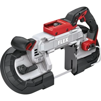 General description The Flex Power Tools SBE 127 18-EC Bandsaw features a brushless motor for enhanced efficiency and a longer service life. Its design ensures a perfectly balanced belt saw, supported by optimal weight distribution of the battery and motor. The adjustable belt speed allows for versatile cuts in various materials, making it especially useful in fire hazardous environments due to its spark-free cutting capability for metal. The bandsaw is equipped with an ergonomically designed, non-slip, soft grip handle for added comfort, and it includes a tool-free saw blade change system with an additional saw blade cover for increased safety during use. An integrated LED lamp provides optimal illumination of the work area. Technical specifications Saw Blade Length: 1140mm Saw Blade Width: 13mm Saw Blade Thickness: 0.5mm Cutting Depth/Width: 127mm Weight: 5.9kg (without battery pack) Compatibility and accessories FLEX battery system: suitable for all FLEX 18 V battery packs Comes as