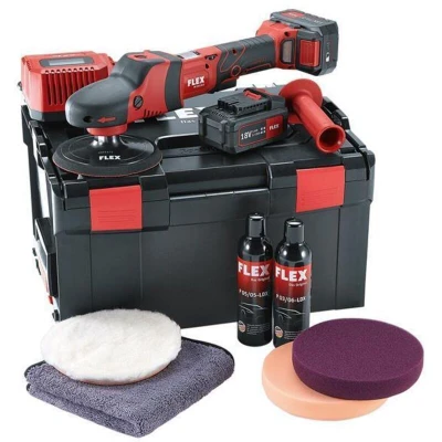 General description The FLEX Power Tools Cordless Rotary Polisher is designed for efficiency and longevity, featuring an electronic management system (EMS) that protects the machine and enhances its service life. It is equipped with a highly efficient brushless motor and a unique combination of planetary and angular gears, which minimizes noise during operation. The polisher offers continuous speed control for gentle starts and can be locked for continuous use, making it ideal for heat-sensitive surfaces. Its flat gear head design allows for safe operation in any position, while the ergonomically shaped grip hood with SoftGrip ensures comfort and security during use. Technical specifications Oscillating Speed: 150-1,450/min Max. Polishing Pad Diameter: 160mm Back-Up Pad Diameter: 150mm Dimensions: 370 x 120mm Weight: 1.9kg (without battery) Compatibility and accessories 1 x PS-O 160 Polishing Sponge 1 x PS-V 160 Polishing Sponge 1 x TW-PT 160 Lambswool 1 x P03/06-LDX Polish 250ml 1 x