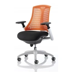 Flex Task Operator Chair White Frame Black Fabric Seat Orange Back