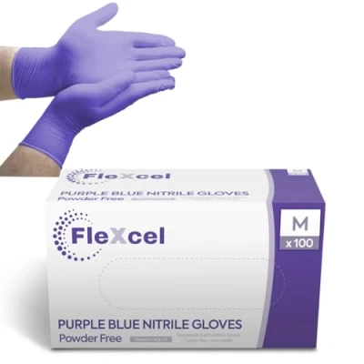 FleXcel Powder Free Nitrile Gloves, Purple, Medium Medical Grade, Latex Free, Food Safe (Box of 100)