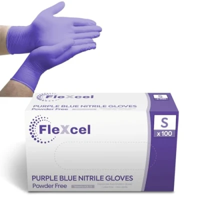 FleXcel Powder Free Nitrile Gloves, Purple, Small Medical Grade, Latex Free, Food Safe (Box of 100)