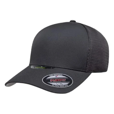 Amazon Flexfit The One and Only Original UniPanel front construction for an uninterrupted clarity Trucker cap with elastic mesh panels 5-panel, mid profile, structured Closed back. Stretch fitted