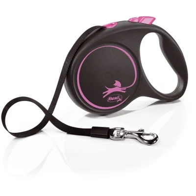 Flexi Black Design Tape Pink Large 5m Retractable Dog Leash/Lead for dogs up to 50kgs/110lbs