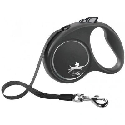 Flexi Black Design Tape Small 5m Retractable Dog Leash/Lead for dogs up to 15kgs/33lbs