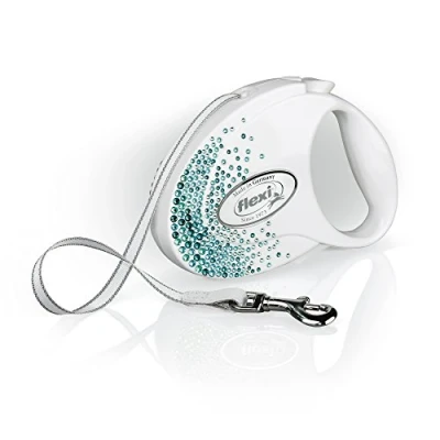 flexi GLAM Splash collection: exclusive lead line made with SWAROVSKI ELEMENTS every SWAROVSKI ELEMENT is manually fitted to the high-gloss polished casing with an ergonomic handle and quick response breaking system for more comfort, quality and style during walks available in size S with a length of 3 m for small dogs (up to 12 kg) and in size M with 5 m length for medium dogs (up to 25 kg) high quality craftsmanship made in Germany