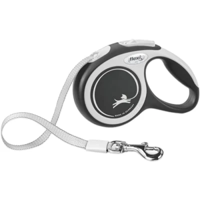 FLEXI New Comfort Retractable Dog Leash (Tape), Ergonomic, Durable and Tangle Free Pet Walking for Dogs Up to 26 lbs, 10 ft, Extra Small, Grey/Black