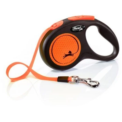 Flexi New Neon Tape Orange Small 5m Retractable Dog Leash/Lead for dogs up to 15kgs/33lbs, Black