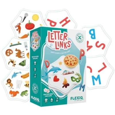 Letter Links is a fast reaction card game. Don’t blink…be the first to spot the link! Flip the cards and the race is on to spot which first letters match one or more of the images on the picture card. The first player to win five cards will claim the title of linking speedster! Suitable for players aged 6+., Manufacturer: FlexiQ
