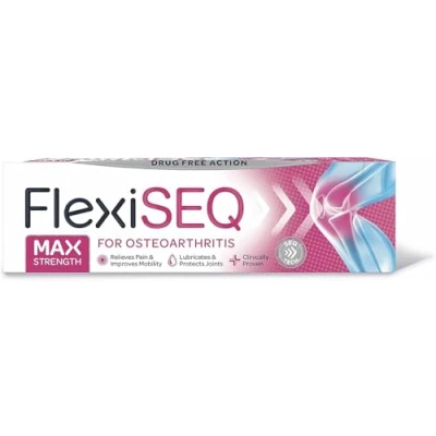 FlexiSEQ Max Strength is our strongest formula that contains the maximum concentration of Sequessomes, and helps to restore joint function, relieve pain and improve mobility in adult patients who have received a diagnosis of osteoarthritis and need maximum strength relief. Drug Free Treatment - FlexiSEQ Max Strength is drug free and can be used long term and alongside medications without drug interactions or exacerbating pre-existing conditions. It is suitable for all synovial joints. Directions of Use - Apply FlexiSEQ Max Strength twice daily, every day, in the morning and evening. Apply to clean, dry skin. Spread a thin layer of gel evenly to the soft tissues around the joint. Do NOT rub in. Wash hands after use. Targeted Joint Relief - SEQ TechTM inside FlexiSEQ Max Strength delivers lubricating ingredients into joints to help reduce pain and improve mobility. Drug free and clinically proven, FlexiSEQ Max Strength is a long term treatment for osteoarthritis and is suitable for all synovial joints. Clinically Proven - In studies across almost 1,500 osteoarthritis patients, FlexiSEQ Max Strength showed improvements in pain, joint stiffness and physical function, as well as an impeccable safety profile