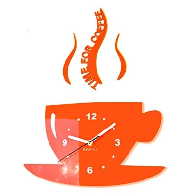 FLEXISTYLE Kitchen wall clock CUP time for coffee (Orange)