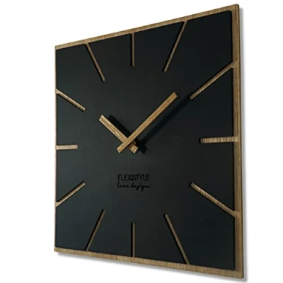 FLEXISTYLE Wall Clock, Wood, Black, 40 cm