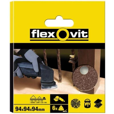 General description The Flexovit Delta Hook & Loop Sanding Sheets are designed for durability and high performance. Made from tough aluminium oxide with a heavy paper backing, these sanding sheets are long-lasting and suitable for various surfaces including wood, paint, and metal. Technical specifications Size: Delta Shape, 94mm Grit: Medium 80G Pack size: 6 sheets Compatibility and accessories Fits most brands of Delta sanders Usage Ideal for sanding wood, paint, and metal surfaces Hook & loop backing allows for quick and easy sheet changes Perforated holes enable effective dust extraction
