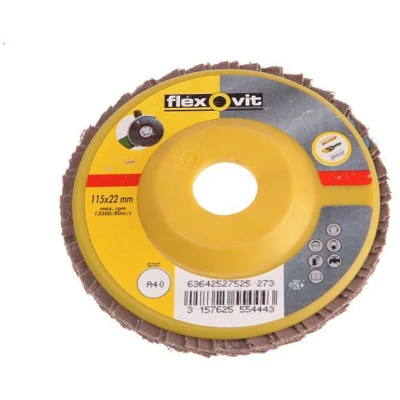 General description This flap disc is designed for use with angle grinders to sand and finish metal surfaces. It is ideal for blending welds, deburring, and finishing castings. Its angled flap design allows for more abrasive contact with the workpiece, increasing efficiency and productivity. Technical specifications Diameter: 115mm Weight: 80g Type: Flap disc Compatibility and accessories Compatible with angle grinders Suitable for use on metal, wood, and painted surfaces Installation Attach the flap disc securely to the angle grinder's arbor Ensure the disc is properly aligned before use Usage Use with appropriate safety gear such as gloves and eye protection Operate at recommended speeds for optimal performance Apply even pressure during sanding or finishing