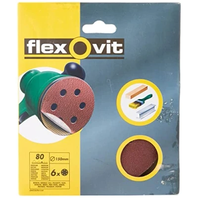 Flexovit FLV26396 Velcro Backed Sanding Discs 150mm 8 Hole Med (6pk)