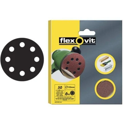 General description Flexovit Hook & Loop Sanding Discs are designed for durability and efficiency. With a diameter of 125mm, these assorted grit discs are perfect for general-purpose sanding and stock removal on various surfaces including wood, paint, and metal. The high-performance Aluminium Oxide ensures a tough and sharp finish, while the heavy paper backing provides extended life for the discs. Technical specifications Diameter: 125mm Grit: Assorted Type: Hook & Loop Compatibility and accessories Compatible with most brands of eccentric sanders Usage Ideal for general-purpose sanding Effective for stock removal on wood, paint, and metal surfaces Other information