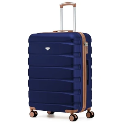 AmazonSIZES: Cabin 21" Dimensions 55x40x20 cm (overall), 47x39x20 cm (body), weight 2.7 kg, capacity 36L. Large 25" Dimensions: 70x51x27cm (All Parts), 63x47x27cm (Body), Weight: 4.2Kg, Capacity: 82L. Extra Large 29" Dimensions: 80x58x32cm (All Parts), 73x55x32cm (Body), Weight: 5.5Kg, Capacity: 131L. Maximise Carry-on Capacity: Certified to the exact dimensions of 55x40x20cm, this trunk leverages the Maximum Carry-On Size approved by Ryanair Priority, TUI, and over 60 other airlines. By perfectly meeting size rules, this hard-shell bag allows you to pack more and reliably avoid unexpected fees at the boarding gate Robust PC+ABS Material: The suitcase features a hard outer shell made from PC+ABS material with a water-resistant, anti-scratch finish, designed to help protect contents during transit. The fully lined interior includes multiple organisational pockets to assist with packing. Effortless Spinner Wheels: Equipped with 8 premium silent spinner wheels that offer exceptional 360-degree rotation and smooth gliding across various surfaces; the multi-directional wheel system provides zero-effort manoeuvrability, significantly reducing strain when navigating busy airports and terminals; features a durable, multi-stage telescopic handle. Comfortable Handling and Storage: Equipped with sturdy, multi-stage aluminium telescopic handles that lock firmly at various heights for comfortable pushing or pulling. Reinforced top and side grab handles are designed for heavy loads and easy lifting into car trunks or off the baggage carousel. For home storage, the entire set conveniently nests within the largest case, saving significant space when not in use.