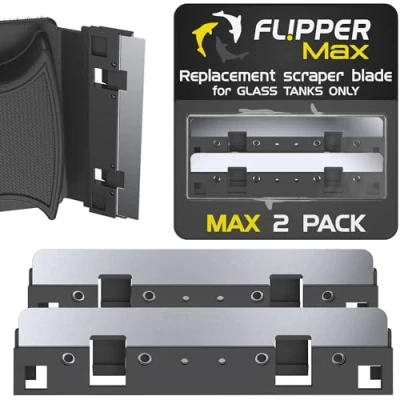 Flipper Max Scraper Blades: These replacement blades for your Flipper Max fish tank cleaning tools are suitable for use on glass fish tanks from 5/8” up to 1” (24mm) thickness. Stainless Steel Blade: Suitable for use on aquarium glass cleaner only, the stainless steel Flipper Max scraper blades are quick and easy to install, snapping into place in 1 direction only. Keep Your Tank Squeaky Clean: These Flipper fish tank Scrubber blades are ultra-low profile for reaching difficult or tight areas of your fresh or saltwater fish tank. Scraper Blade Multipack: This pack of 2 aquarium glass scraper blades for fish tanks is replaceable and interchangeable. Change your blades every 3-6 months to keep your Flipper cleaning like new.