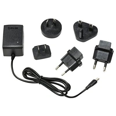 Universal power supply for FLIR Exx and T5xx thermal cameras. Includes international plugs (UK, US, EU, Australia). Direct USB connection. Compatible worldwide. FLIR part. T911630ACC.