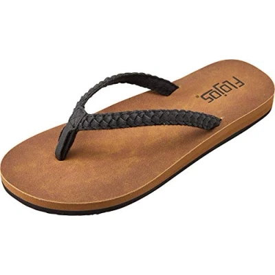 Flojos Women's Grace Flip Flop, Black/Tan, 7 UK