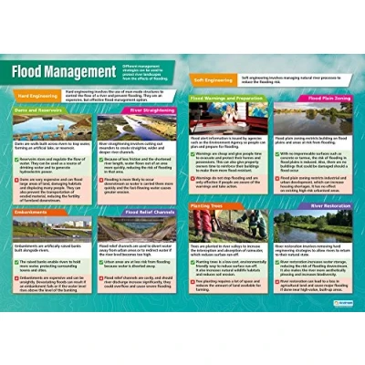 Flood Management Geography Posters Laminated Gloss Paper measuring 850mm x 594mm (A1) Classroom Education Charts by Daydream
