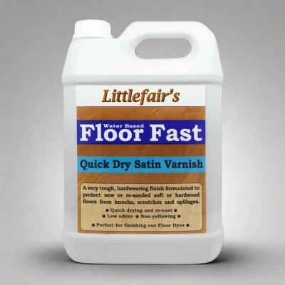 Littlefair's bring you a very tough, hardwearing finish formulated to protect new or re-sanded soft or hardwood floors from knocks, scratches and spillages. Extremely low VOC.. Drying Time. The varnish will be touch dry in approximately 20 minutes and can usually be recoated after 2 hours in suitable conditions. Therefore, a floor can be walked on within the day.. Please note: this is an approximate drying time. There could be a number of factors that may affect this.. Coverage. Approx. coverage of 10-12m² per litre, for one liberal coat.. This is a quick drying, low odour, non-yellowing water based varnish. Ideal for protecting soft and hardwood floors and many other areas that require a durable surface. It can be applied to most types of wood and manufactured boards, such as plywood and MDF. It can also be used on concrete and unsealed terracotta.. Due to it being water based your brush will be very easy to clean and with very low VOCs there will be hardly any odour.. If you are applying the varnish over Littlefair’s Water Based Floor Dye it should be possible to both dye the wood and apply two full coats of varnish in a day, after an early start!. Our products come complete with easy to follow yet comprehensive instructions to guide you through every step, including preparing the wood. Should require any further help please feel free to get in touch for expert advice.. Please do not use our Wax Polish over our Floor Fast Varnish as our Wax Polish is not designed for use on flooring.. Please note: Whilst waterproof, the varnish is not designed to have water sitting on it for long periods, our Titan Topcoat may be a more appropriate product.. If you'd like to read more about our varnishes, please have a read of our blog here.
