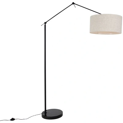 General description Introducing the QAZQA Floor Lamp Black with Light Grey Lampshade, a stylish addition to any designer interior. This lamp combines functionality with modern aesthetics, making it a perfect fit for various living spaces. Technical specifications Height: 190.8 cm Length: 125 cm Width: 50 cm Base diameter: 35 cm Base height: 5 cm Cord length: 250 cm Bulb holder: E27 Max wattage: 1 x 60 W Voltage: 220V/230V Protection class: IP20 Compatibility and accessories Light source: Not included (E27 fitting required) Installation Easy to set up with included cord and plug Usage Dimmable functionality (dimmer not included) Suitable for indoor use in various spaces such as dining rooms, hallways, offices, kitchens, bedrooms, living rooms, and showrooms Other information
