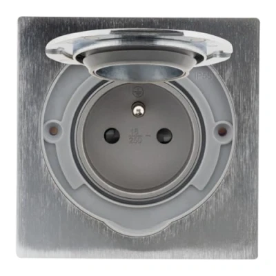 Floor socket 16A 2P+T brushed aluminium finish IP55 simple Zenitech